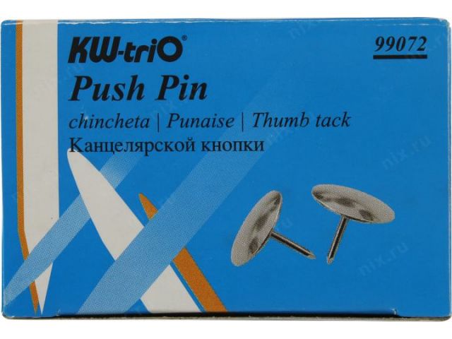 Kw-Trio 99072 Канцелярские кнопки, хром, уп. 100шт (цена за 1 уп.)