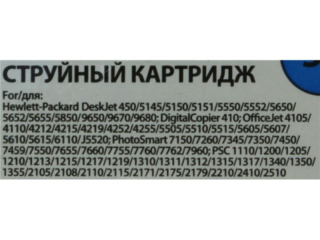 | Совместимость | HP Desk Jet 5150, 5850, 450CBi, 450wbt, 450Ci, HP DeskJet 5550, 450CBi, 5652, 9650, 9670, F4180 All-in-One, HP OfficeJet 6110, 4110 All-in-One, 5510 All-in-One, 4255 All-in-One, HP PhotoSmart 7150, 7350, 7550, 7260, 7660, 7760, 245, 145, 7960, 7450, HP PSC 2110, 2210, 1210, 2175, 1110 All-in-One, 1350 All-in-One, 2410 All-in-One, 1215 All-in-One, 1315 All-in-One |