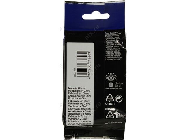 Brother HSe-221 термоусадочная трубка (8.8мм x 1.5м, Black on White)