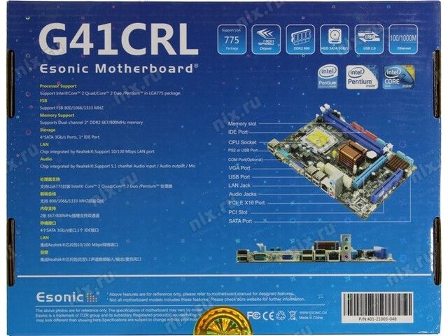 Esonic G41CRL3 (RTL) LGA775 G41 PCI-E+SVGA LAN SATA MicroATX 2DDR2