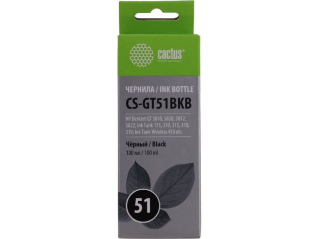 Чернила Cactus CS-GT51BKB Black для HP DeskJet GT 5810/5820/5812/5822 (100мл)