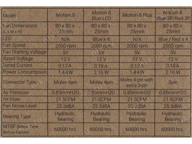 Aerocool MOTION 8 (80x80x25мм, 25.3дБ, 2000 об/мин)