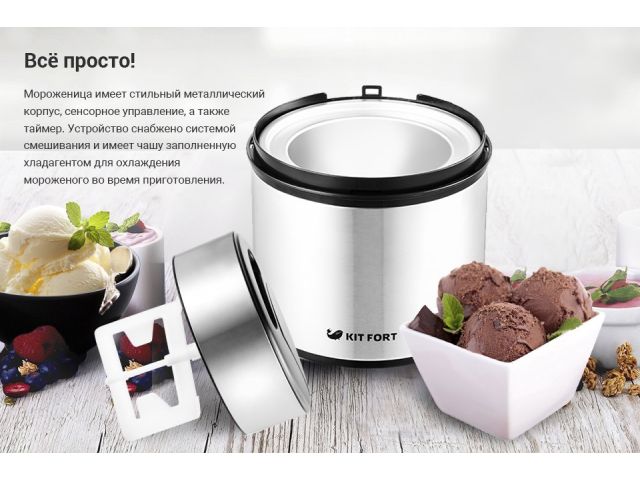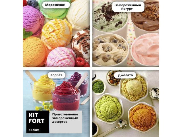 Kitfort KT-1804 Мороженица полуавтоматическая (12Вт, 2л, 45 минут)