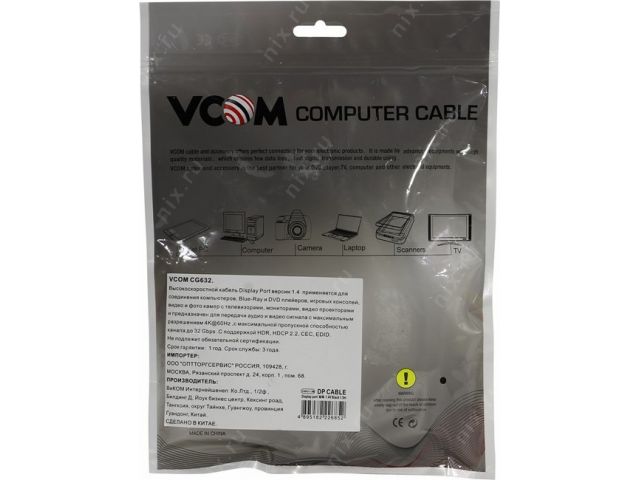 Кабель DisplayPort DisplayPort VCOM CG632-1.5м 1.5 м.