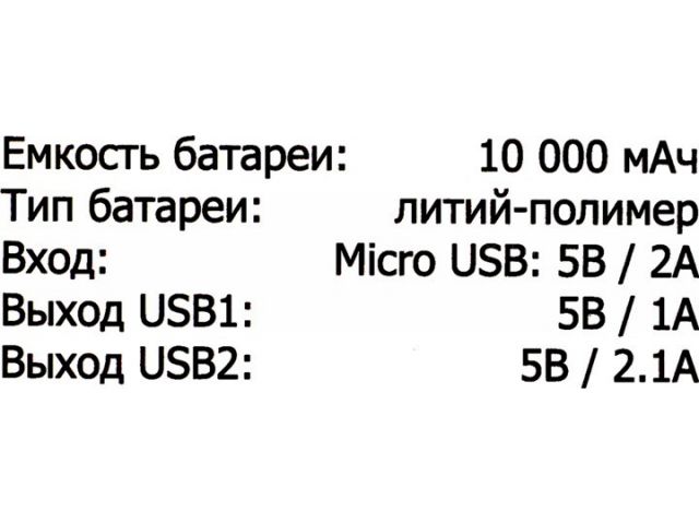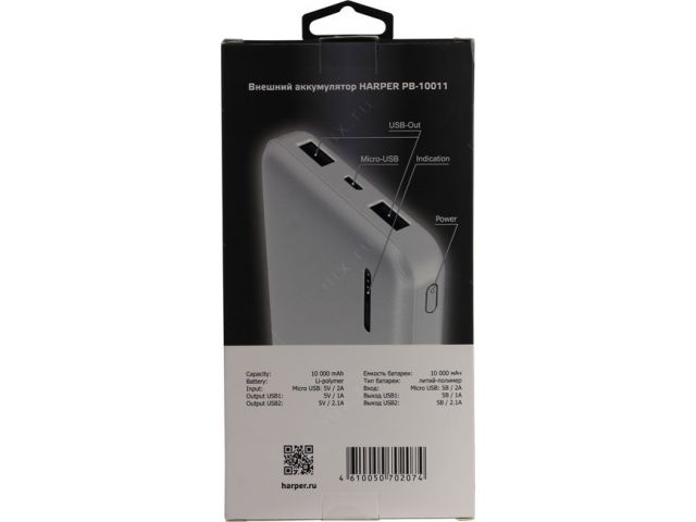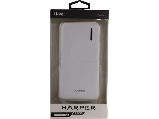 Внешний аккумулятор HARPER PB-10011 White (2xUSB 2.1A, 10000mAh, Li-Pol)
