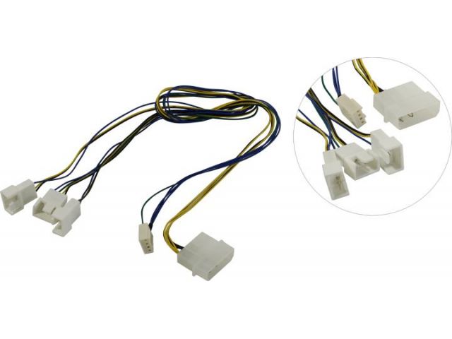 Разветвитель питания коннектора 4 пина на 3x 4 пина с дополнительным питанием от Molex
