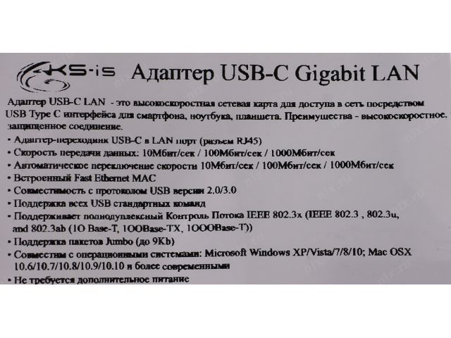 KS-is Внешняя сетевая карта (1 x 1 Гбит/с, USB)