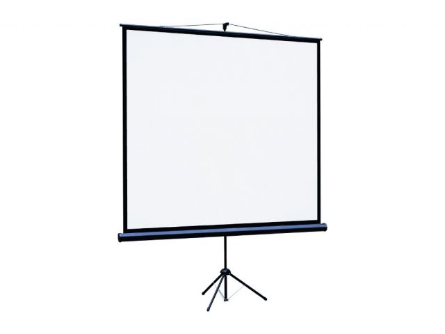 Компактный переносной экран на штативе. Благодаря встроенному в штатив корректору трапецеидальных искажений обеспечивается точная настройка изображения.