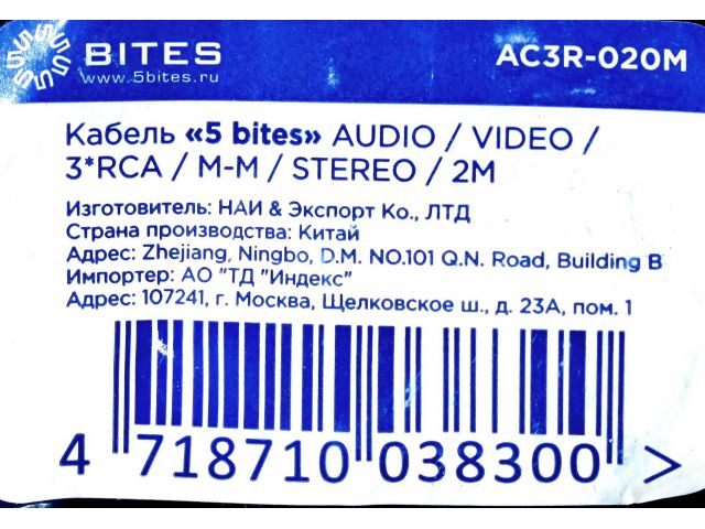 • 5bites AC3R-020M Кабель 3RCA-M -- 3RCA-M 2м