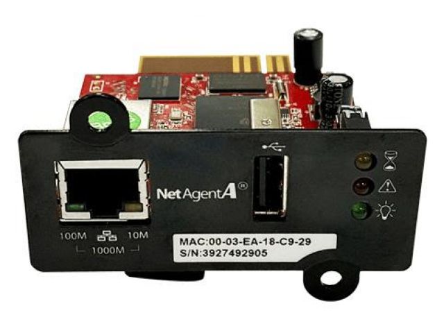 | Встраиваемый SNMP-адаптер для ИБП POWERCOM серий KIN-RM UPS, SPT UPS, SPR UPS, SRT-LCD UPS, INF UPS, DRU UPS, MAC UPS, MAC-L UPS, MRT UPS, MRT-L UPS, SNT UPS, SNT-L UPS. Модуль SNMP взаимодействует с ИБП по собственному внутреннему протоколу обмена. C внешней же сетью обмен данных происходит по стандартизированному простому протоколу сетевого управления. Такая унификация позволяет объединять разные устройства в сети под управлением единой клиентской программы.