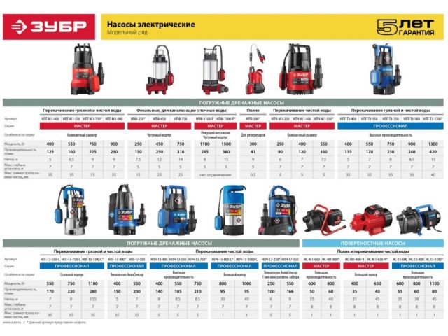 NEW   НПФ-750 Насос фекальный погружной, ЗУБР НПФ-750, 750 Вт, 310 л/мин, напор 14 м, чугунный корпус, провод 5 м