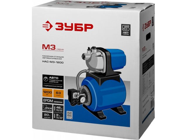 | Насосная станция ЗУБР НАС-М3-1200, предназначена для обеспечения постоянного давления воды при устройстве систем водоснабжения, полива газонов и орошения садовых участков, а также для откачки воды из емкостей или водоемов. Ударопрочный корпус насоса изготовлен из гигиенического армированного стекловолокном пластика. Гидроаккумулятор для постоянного поддержания давления воды. Груша гидроаккумулятора изготовлена из специального материла, который превосходит по показателям EPDM и натуральную резину. Гидроаккумулятор обеспечивает полноценный водозабор с более редкими включениями насоса, что продлевает срок его службы и способствует экономии электроэнергии. Автоматическое включение/выключение насоса при изменении давления в магистрали. Термопредохранитель для защиты от перегрева предотвращает повреждение двигателя. Соединительный штуцер наиболее распространенного диаметра 1'' для легкого подключения. |