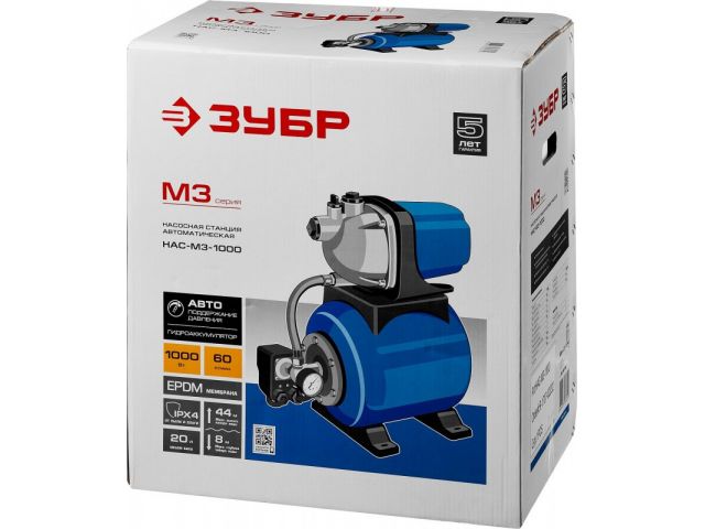 NEW   НАС-М3-1000 Станция насосная ЗУБР МАСТЕР М3, 1000 Вт, 60 л/мин, напор 44 м, бак 20 л