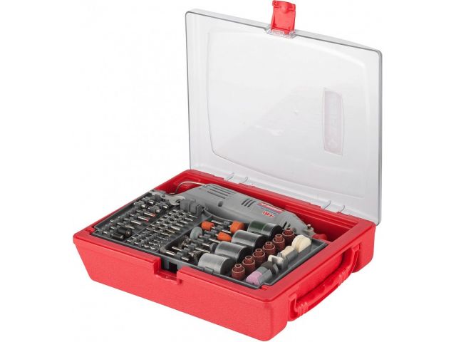 | Комплект поставки | Коробка для оснастки, Набор шлифовальной и отрезной оснастки, Чемодан. Оснастка включает в себя: цанги, круги шлифовальные, войлочный полировальный круг, фетровый полировальный круг, державка для фетровых кругов, резиновый полировальный круг, сверла по металлу, державки для шлифовальных цилиндров,
