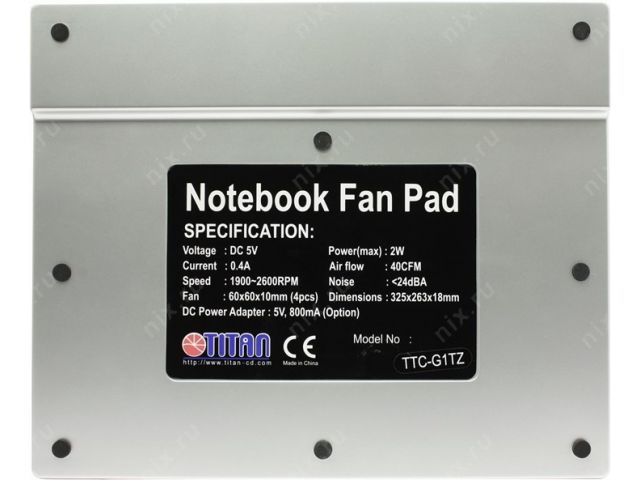 TITAN TTC-G1TZ Notebook Fan Pad (15.4-24дБ,1900-2600об/мин,USB питание)