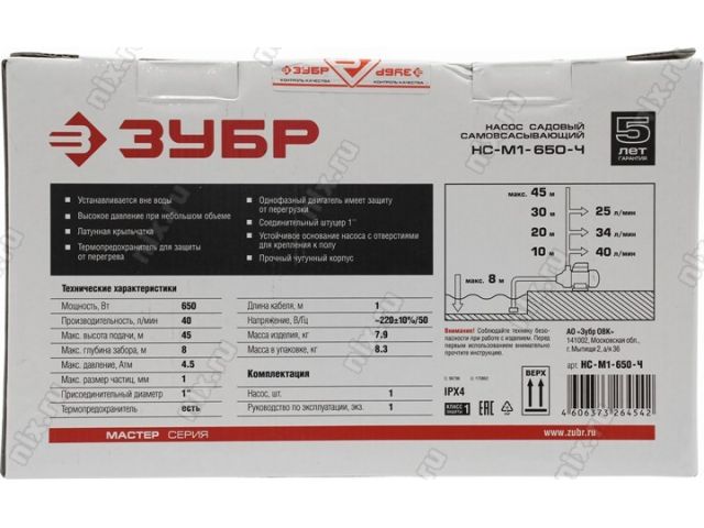 | Насос поверхностный ЗУБР Мастер / Домашний мастер НС-М1-650-Ч |