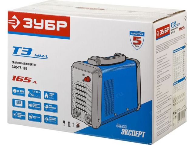 •  NEW   ЗАС-Т3-165 Инвертор сварочный, ЗУБР Профессионал, 165А, MMA,IGBT,Форсаж дуги,ПВ-60%,220В (мин 160В)