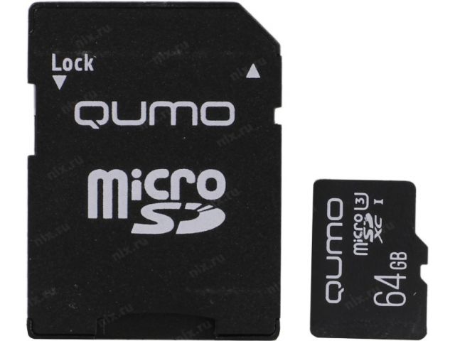 Карта памяти Qumo QM64GMICSDXC10U3 microSDXC UHS-I Class 3 (U3), Class 10 64 ГБ +microSD- SD адаптер