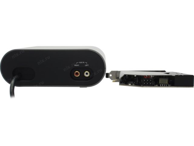 | Игровая звуковая карта c выносным модулем регулировки звука ACM. Модуль также оснащен микрофоном и входами/выходами Jack 6.3 мм и Jack 3.5 мм |