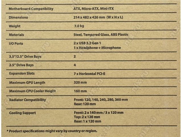 | Ключевые особенности | Крючок для наушников, Скрытая укладка шлейфов, Быстрый доступ к опорной пластине кулера, Окно из закаленного стекла (Tempered Glass) |