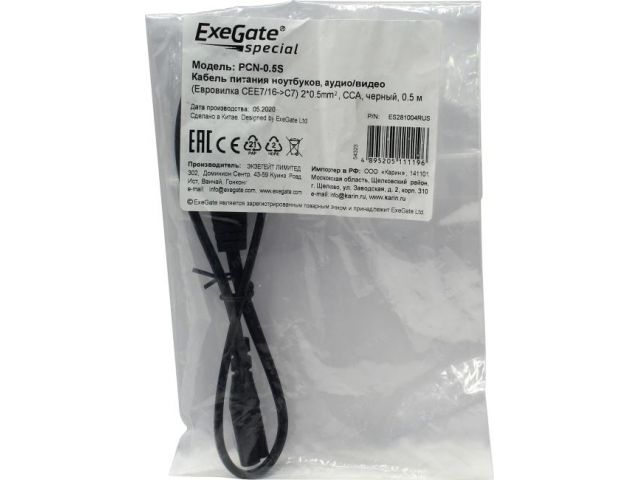 Кабель питания C7 ( восьмерка или дробовик ) - розетка 220V ExeGate PCN-0.5S 6А 0.5мм2 0.5 м.