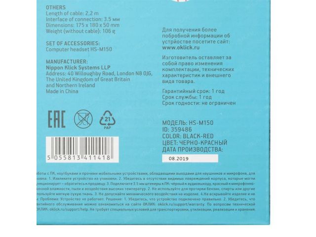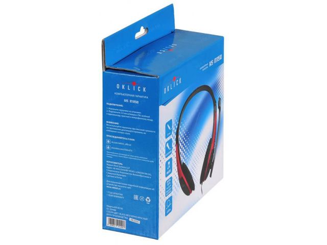 Наушники с микрофоном OKLICK HS-M150  Black-Red (шнур 2.2м) 359486