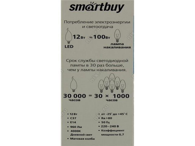 Smartbuy SBL-C37Can-12-40K-E14 (E14, 960 люмен, 4000К, 12Вт, 220-240В)
