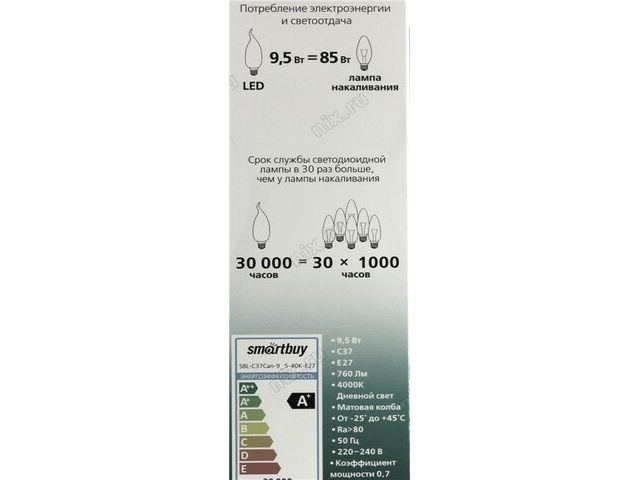 Smartbuy SBL-C37Can-9.5-40K-E27 (E27, 760 люмен, 4000К, 9.5Вт, 220-240В)
