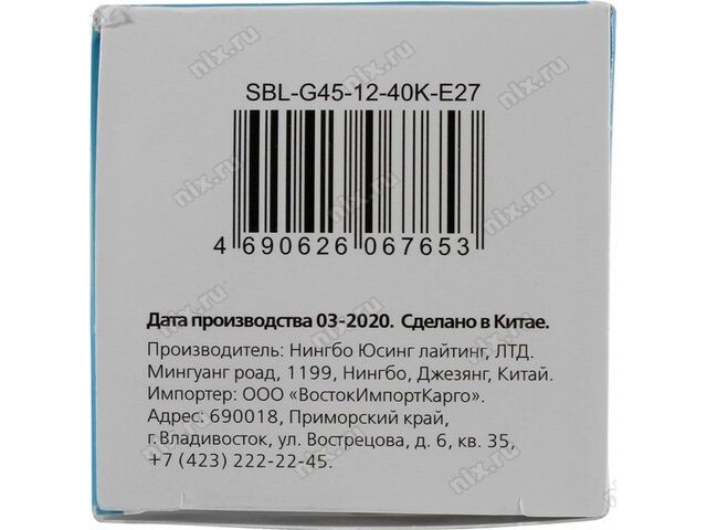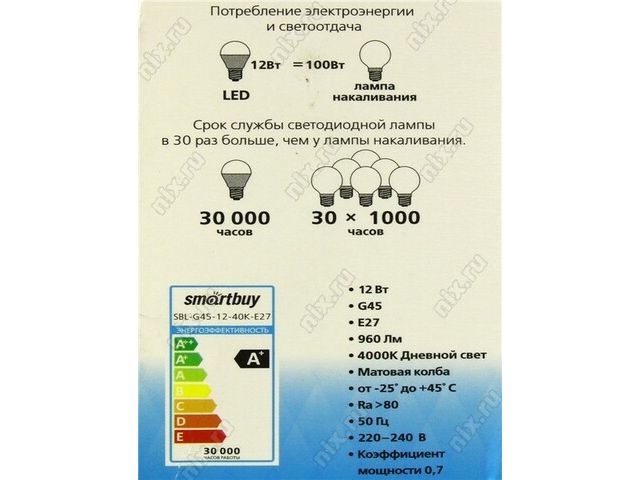 | Лампа светодиодная SmartBuy SBL-G45-12-40K-E27 |