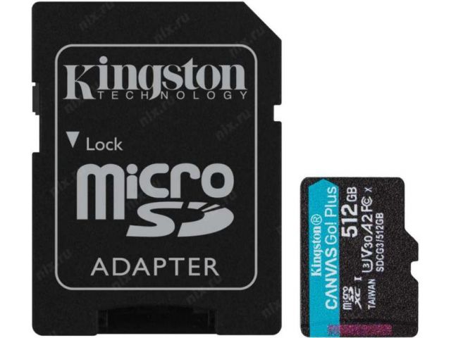 Kingston SDCG3/512GB microSDXC Memory Card 512Gb A2 V30 UHS-IU3 + microSD-- SD Adapter