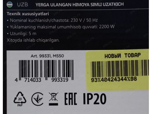 Кол-во выходных розеток5 розеток евростандарт с заземлением