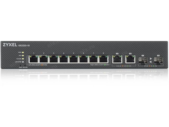 Zyxel GS2220-10 предлагает несколько вариантов управления: через веб-интерфейс, SNMP, Telnet или SSH, что делает его удобным для администраторов с разным уровнем подготовки. Встроенные протоколы LLDP и LLDP-MED упрощают обнаружение сетевых устройств, а поддержка Rapid Spanning Tree Protocol (RSTP) и Multiple Spanning Tree Protocol (MSTP) обеспечивает отказоустойчивость сети.
