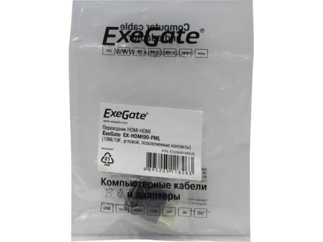 Exegate EX284919RUS Переходник HDMI 19F - HDMI 19M Г-образный 270° (EX-HDMI90-FML)