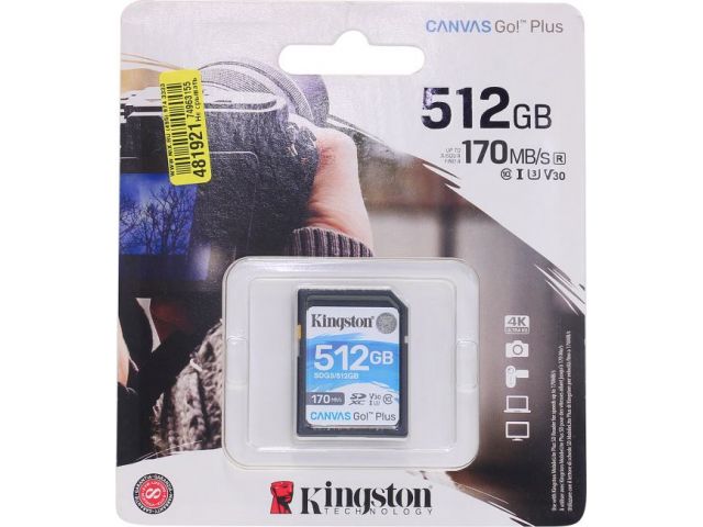 Карта памяти Kingston SDG3/512GB SDXC V30, UHS-I Class 3 (U3), Class 10 512 ГБ