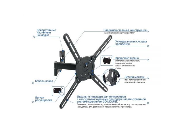 Настенное крепление для телевизоров с диагональю от 22 до 65 дюймов и весом не более 40 кг