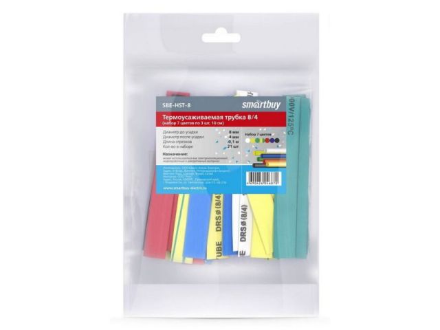 Smartbuy SBE-HST-8 Набор термоусадочных трубок (d=8 мм, 100мм, 21шт, 7 цветов)