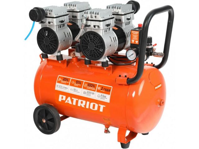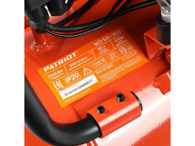 525301925 Компрессор поршневой Patriot WO 50-300 безмасляный 300л/мин 50л 2000Вт оранжевый