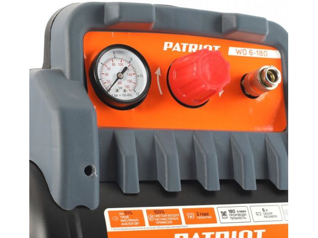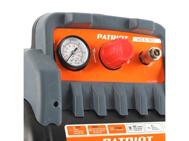 Patriot WO 6-180 Компрессор поршневой безмасляный (1100Вт, 180л/мин, ресивер 6л)