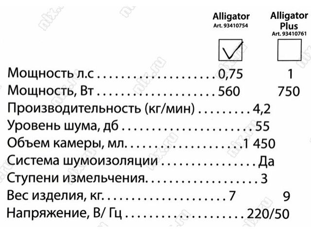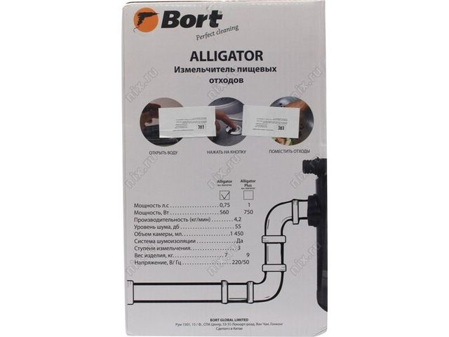 Bort Alligator 93410754 Измельчитель пищевых отходов (560Вт, 4.2 кг/мин., 55 дБ, 1.45л)