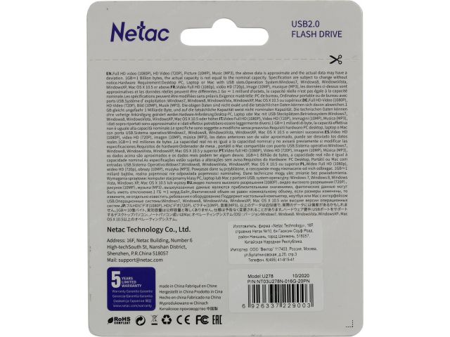 • Netac NT03U278N-016G-20PN USB2.0 Flash Drive 16Gb (RTL)