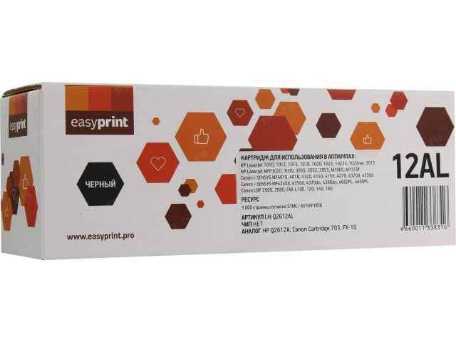 Картридж EasyPrint LH-Q2612AL-NC для HP LJ 1010/12/15/18/20/22, 3015,Canon LBP2900/3000/MF4010/4018