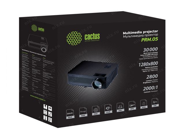 Cactus CS-PRM.05B.WXGA-W (LCD, 2800 люмен, 2000:1, 1280x800, HDMI, RCA, USB, WiFi, ПДУ)