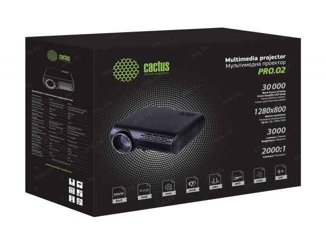 Cactus CS-PRO.02B.WXGA-W  (LCD, 3000 люмен, 2000:1, 1280x800, HDMI, USB, WiFi, ПДУ)