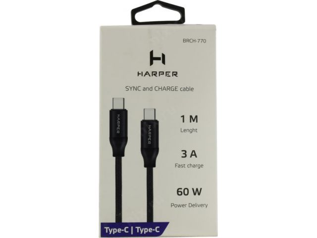 HARPER BRCH-770 Black Кабель USB2.0-C M -- USB2.0-C M 1м