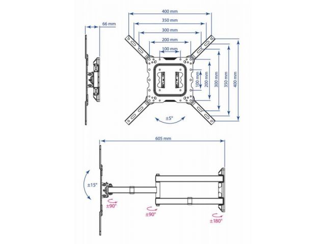 Крепление монитора или телевизора к стенеVESA 100 x 100, VESA 200 x 100, VESA 200 x 200, VESA 300 x 200, VESA 300 x 300, VESA 400 x 200, VESA 400 x 300, VESA 400 x 400
