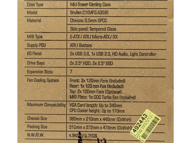 Miditower GameMax Brufen C1 MFG.A368 E-ATX без БП, с окном