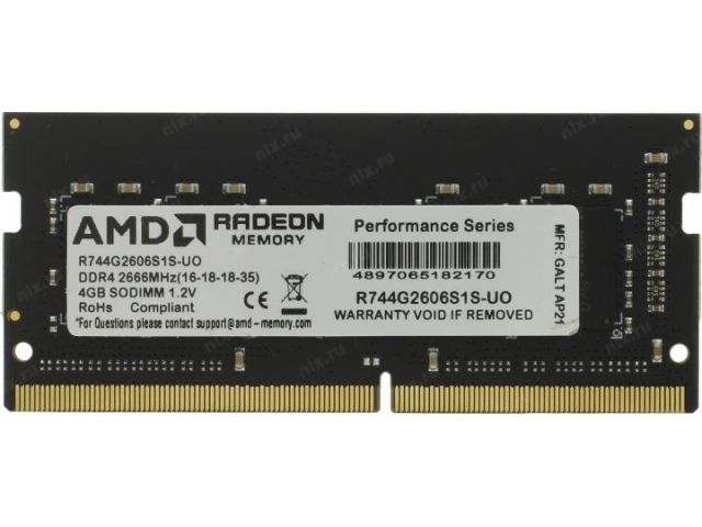 AMD R744G2606S1S-U(O) DDR4 SODIMM 4Gb  PC4-21300 CL16 (for NoteBook)