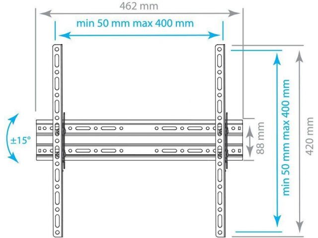 Крепление монитора или телевизора к стенеVESA 50 x 50, VESA 75 x 75, VESA 100 x 100, VESA 200 x 100, VESA 200 x 200, VESA 300 x 200, VESA 300 x 300, VESA 400 x 200, VESA 400 x 300, VESA 400 x 400