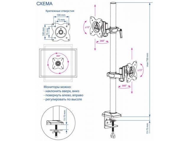 Настольный держатель для эргономичной регулировки положения 2 дисплеев с диагональю от 15 до 32 дюймов