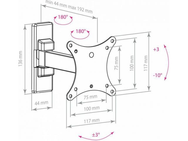 • ArmMedia MARS-1 Black Универсальное поворотное крепление (VESA75-100, 20кг)